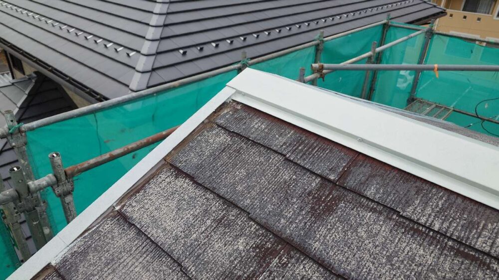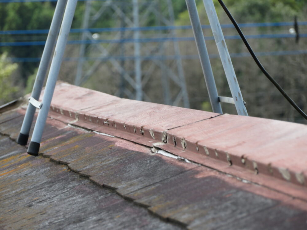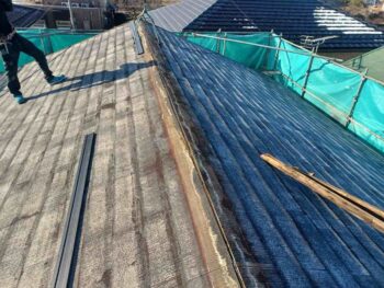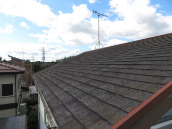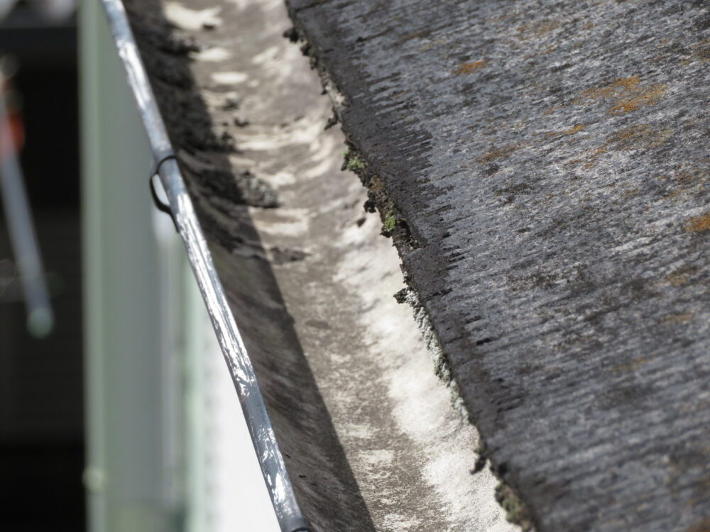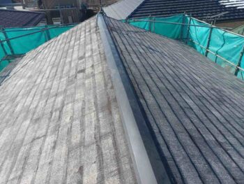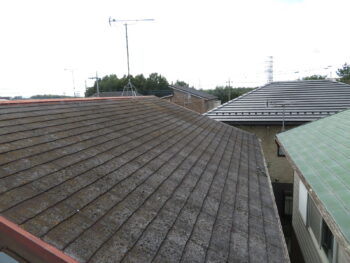 既存屋根材はスレート屋根です。石質の薄い板を使用しているため、劣化や反りがしやすい材料です。