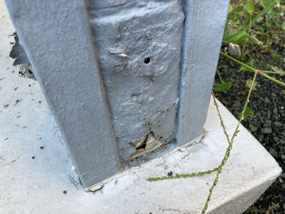 地面との離れが無いため、そのまま柱材が水を吸い込んでしまい柱が腐食しています。
