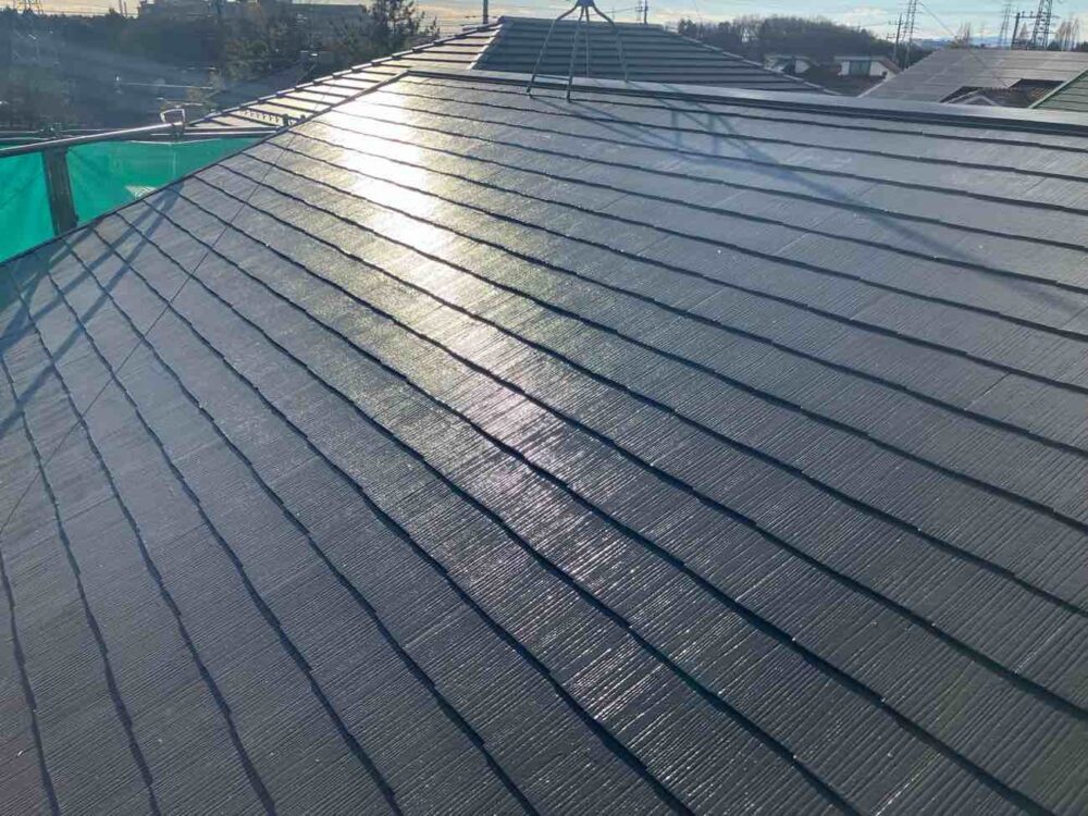 | 使用材料 | 屋根塗装:アステックペイント スーパーシャネツサーモSi カラー:9111 カーボングレー 外壁塗装:エスケー化研 エスケープレミアムNADシリコン カラー:8082 ニンバス 外壁材:ニチハ モエンサイディングM14 |