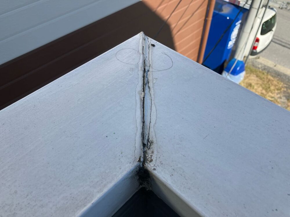 紫外線の影響により板金の劣化・シーリング劣化が激しく交換が必要な状態です。